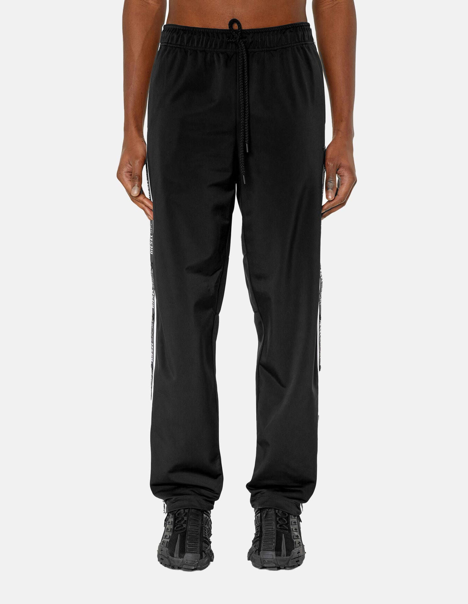 From the Diesel Sport's collection, This Diesel Sweatpants feature logo tape down the sides and snap buttons that open all the way to the top. Made from breathable sweat-wicking technical jersey.