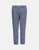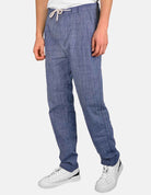 These Gaudì navy drawstring trousers blend relaxed comfort with refined style. Crafted from lightweight fabric, they feature an easy straight-leg cut, an elastic waistband with an adjustable drawstring, and subtle tailoring for a polished finish. Versatile and breathable, they’re ideal for effortless everyday wear, pairing well with both casual shirts and smart polos.