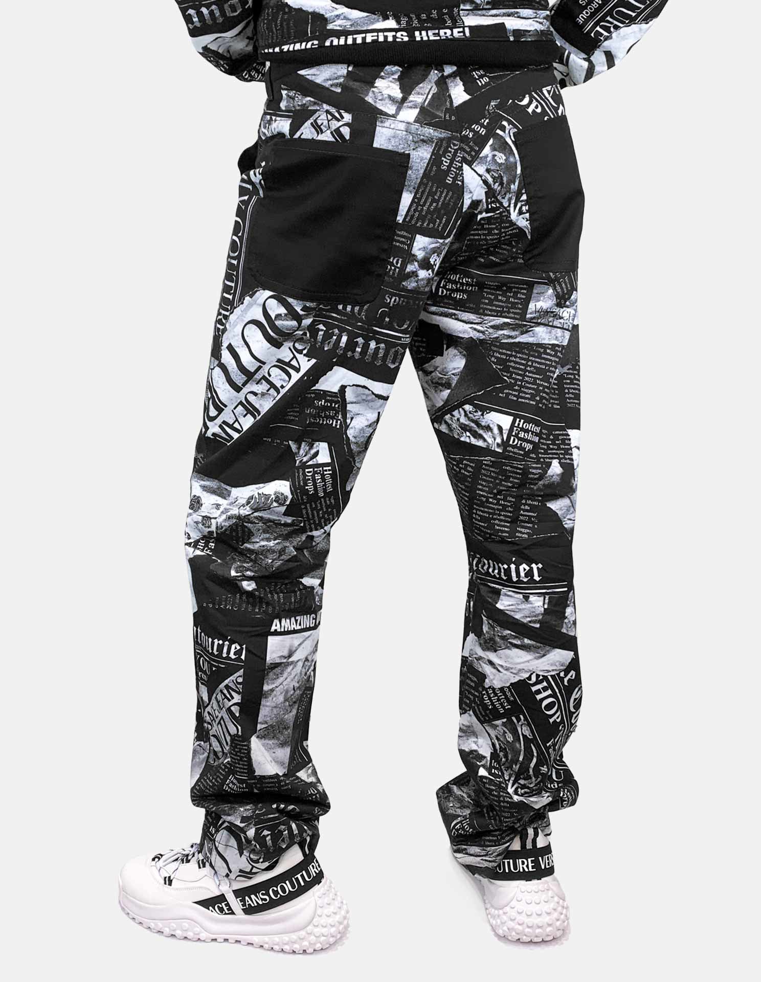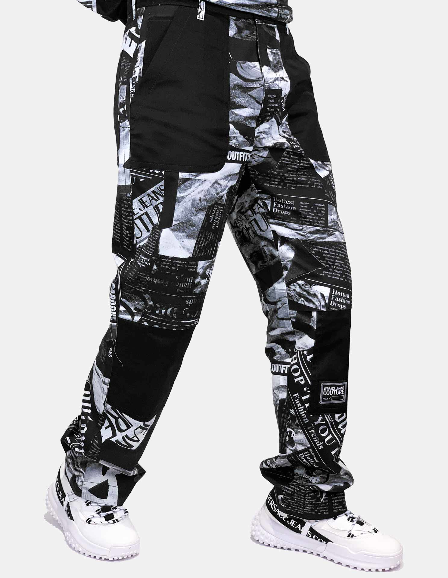 This regular fit cargo pants has an all-over magazine prints of articles that feature Versace Jeans Couture. With 7 black pockets to contrast against the print, these cargo pants revitalises the nostalgic 2000's silhouettes