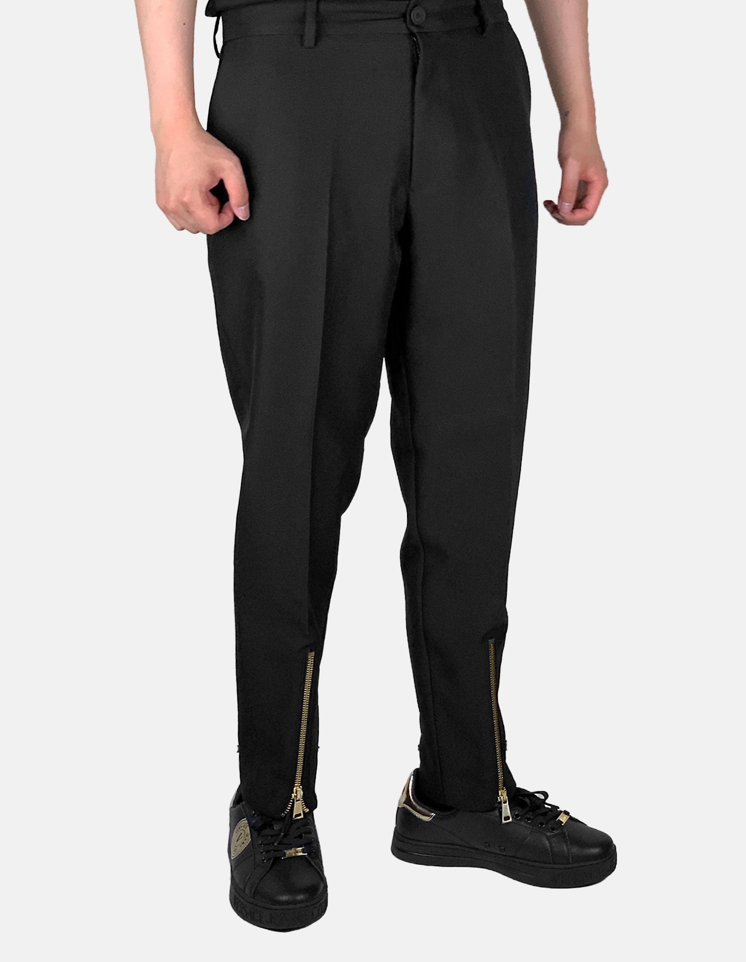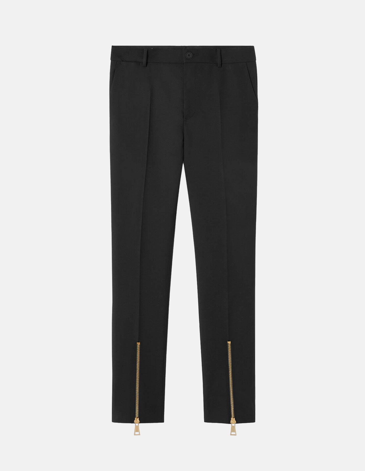 These straight-leg formal trousers are detailed with gold zip closures at the front hem, blending streetwear and formalwear. Pair with the Zip Collar Piercing Double-Breasted Blazer to complete the look.