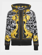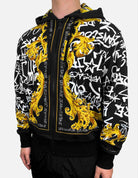 A bold take on the hooded sweat jacket, this Versace Jeans Couture piece features the new Graffiti panel print in the front and back