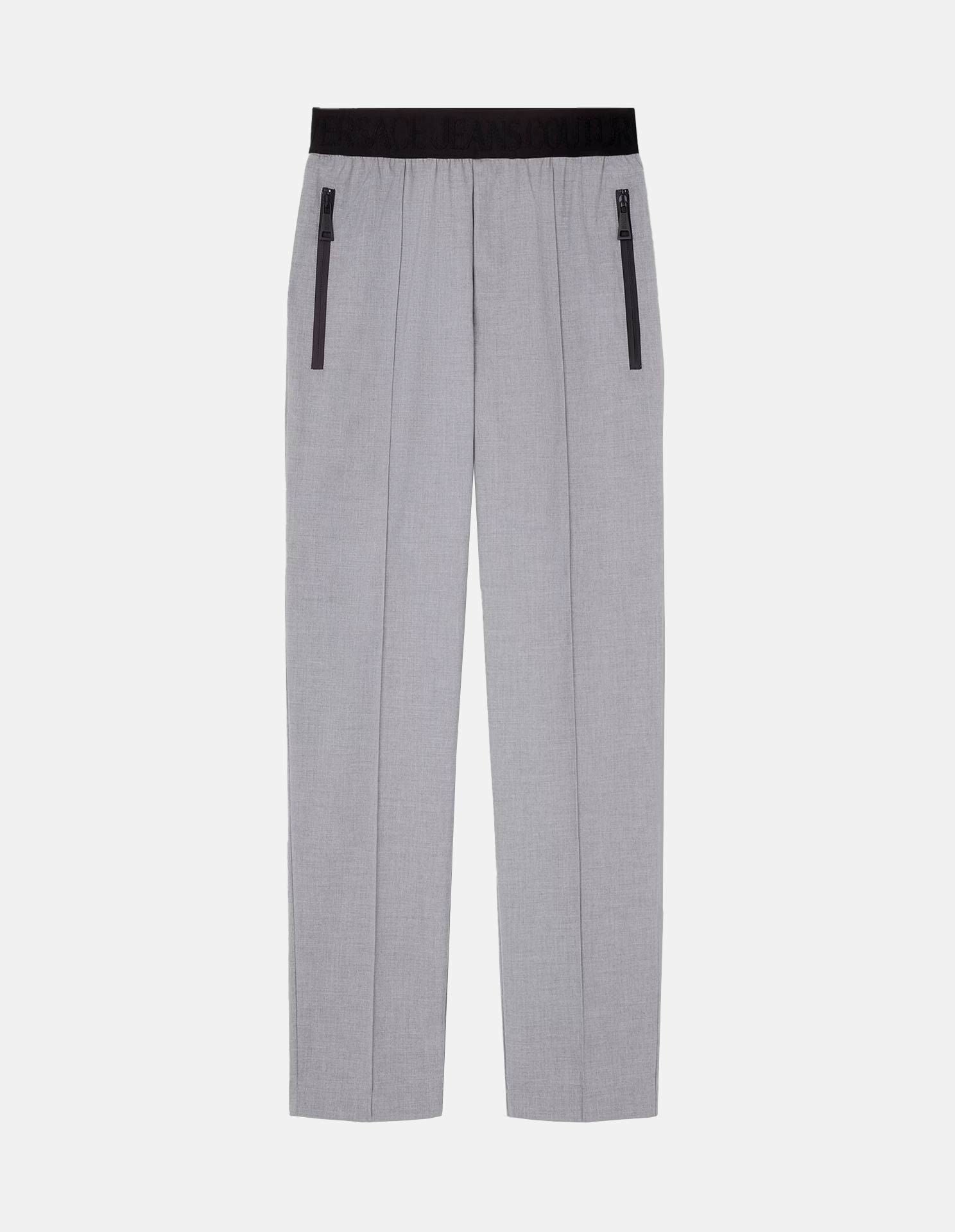 Look sleek in this grey tapered trouser from Versace Jeans Couture. Black embroidered logo on elasticated waistband gives this the Versace stamp, giving a classy and luxurious look to any outfit.