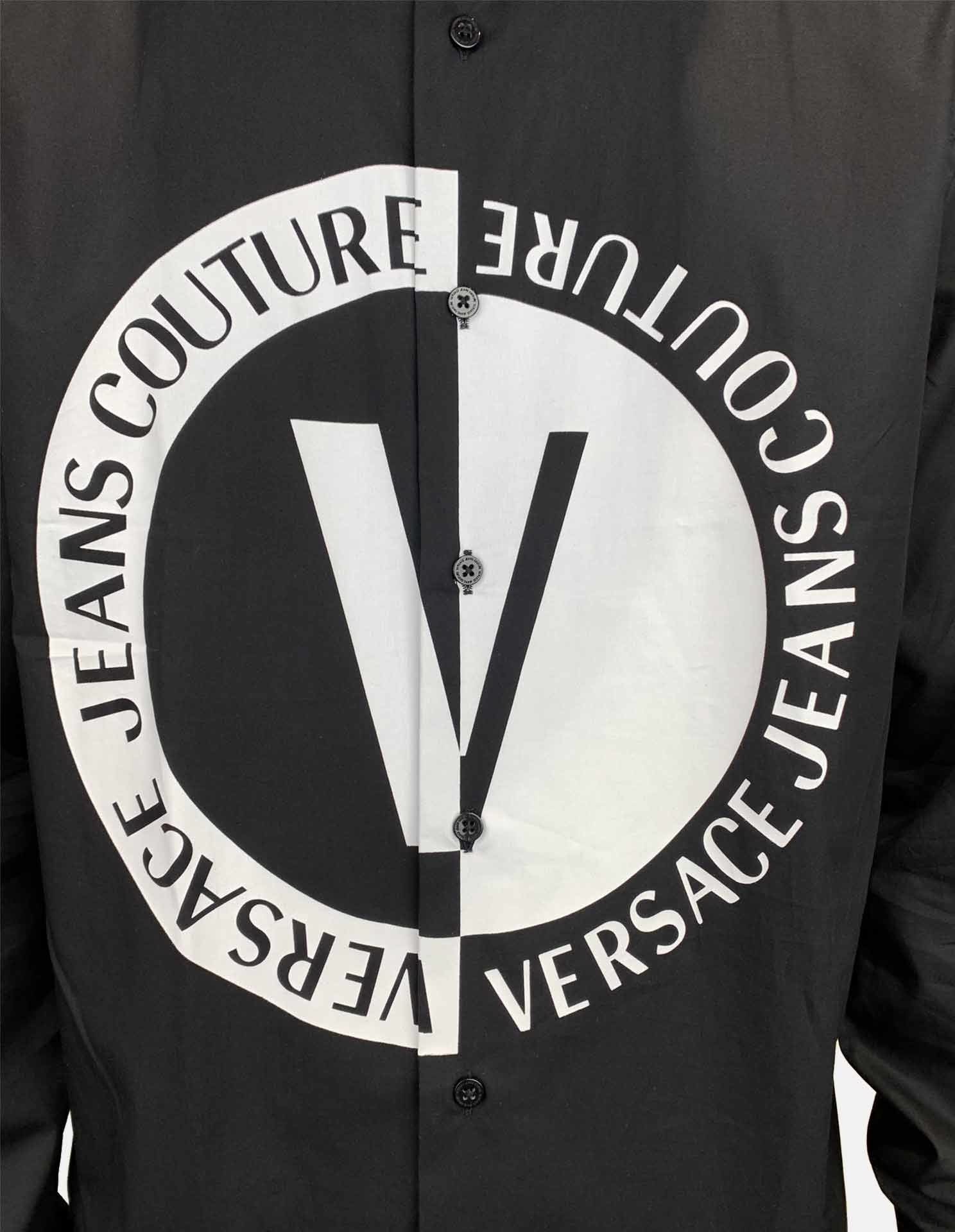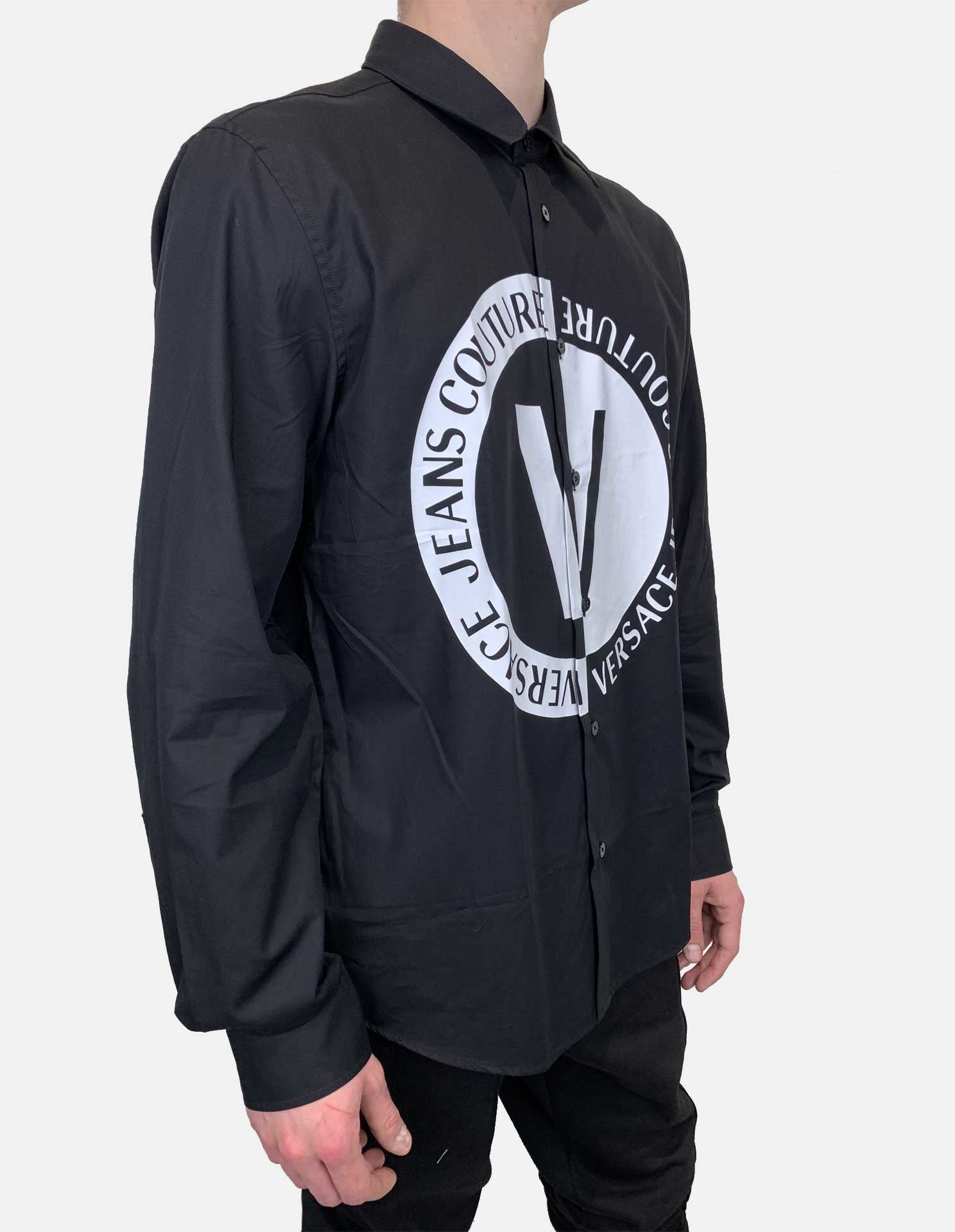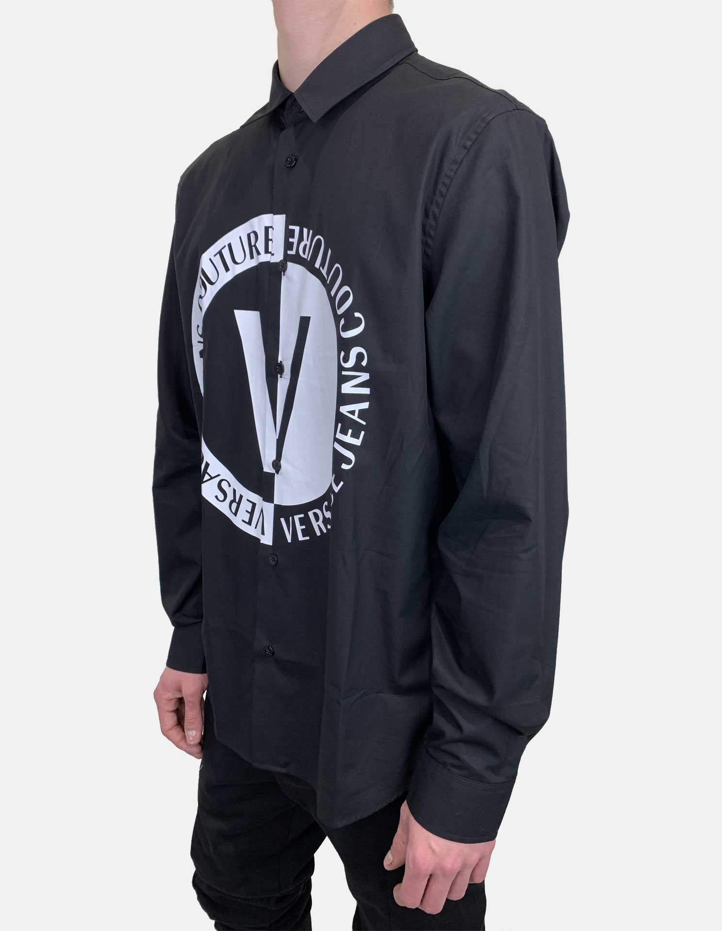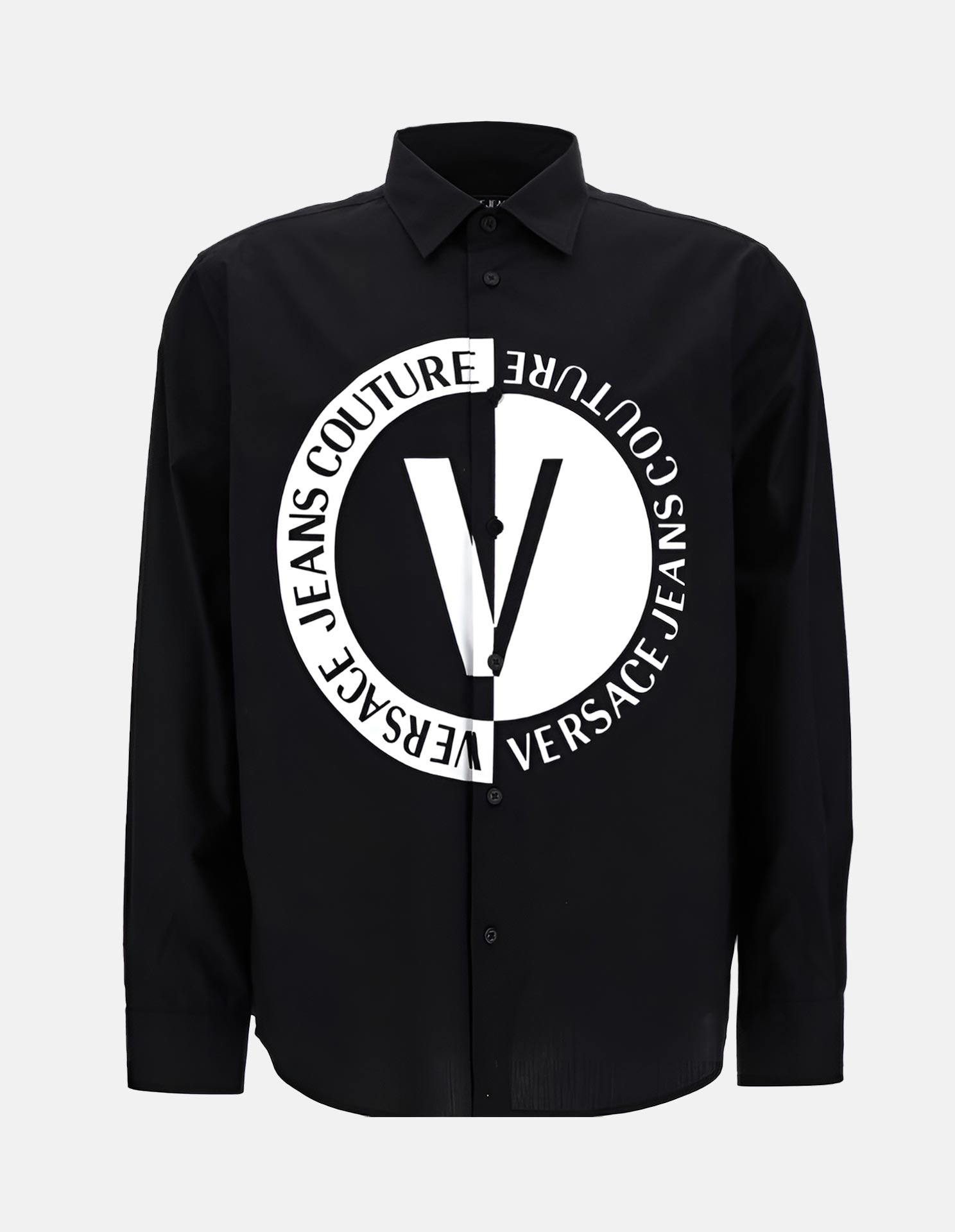 Regular fitting pointed collared black long sleeve shirt, featuring a new contrast oversized V-Emblem logo on the front center. This shirt is made from 100% cotton can be paired with black or jeans with a dark wash. This is a casual shirt that provides a bold statement.