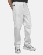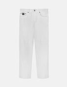 Crisp and contemporary, these white denim pants from Versace Jeans Couture bring a refined edge to casual dressing. Cut from premium cotton with a clean, structured fit, they feature the brand’s signature gold-tone hardware and tonal stitching for a touch of understated opulence. The classic five-pocket design is finished with a logo patch at the waist, embodying effortless sophistication and the bold elegance synonymous with the Versace name.