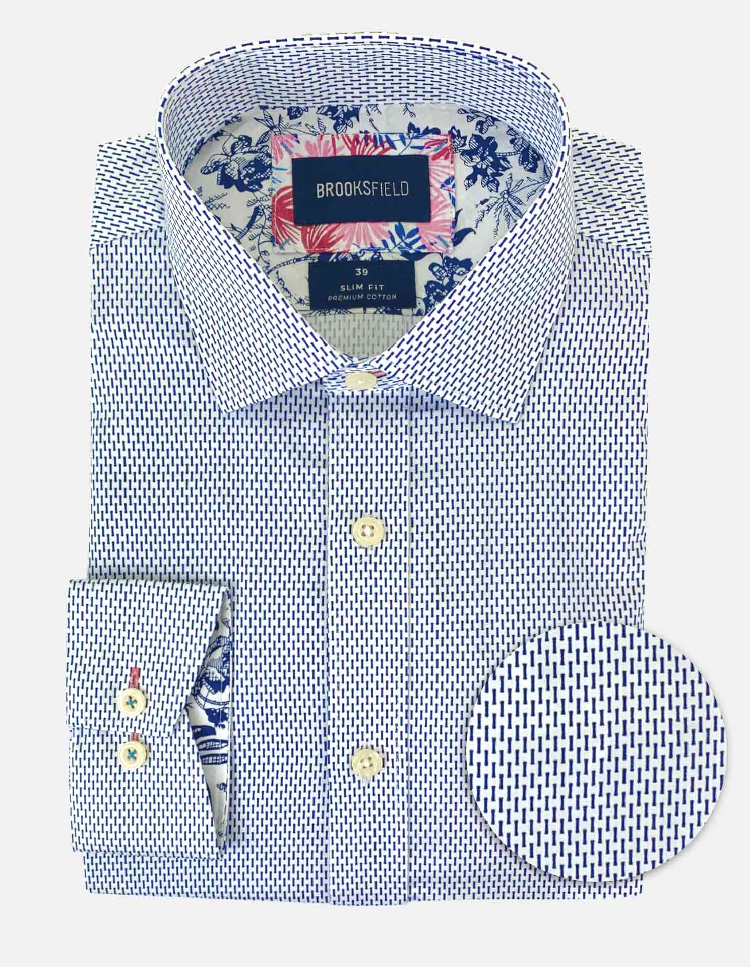 Brooksfield presents its slim fit range with a sharp, modern silhouette designed to deliver a polished, slimming look. This business shirt features a subtle all-over blue diamond motif is crafted from premium sustainable 100% cotton, it offers a smooth, lustrous finish and all-day comfort.
