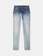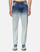 Slim fit with a clean construction and essential details. Diesel D-Strukt Jeans are made from cotton blended with elastane for added stretch and comfort. Featuring a two-tone wash with a medium blue waist and lighter legs. 32" in-leg.
