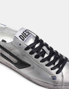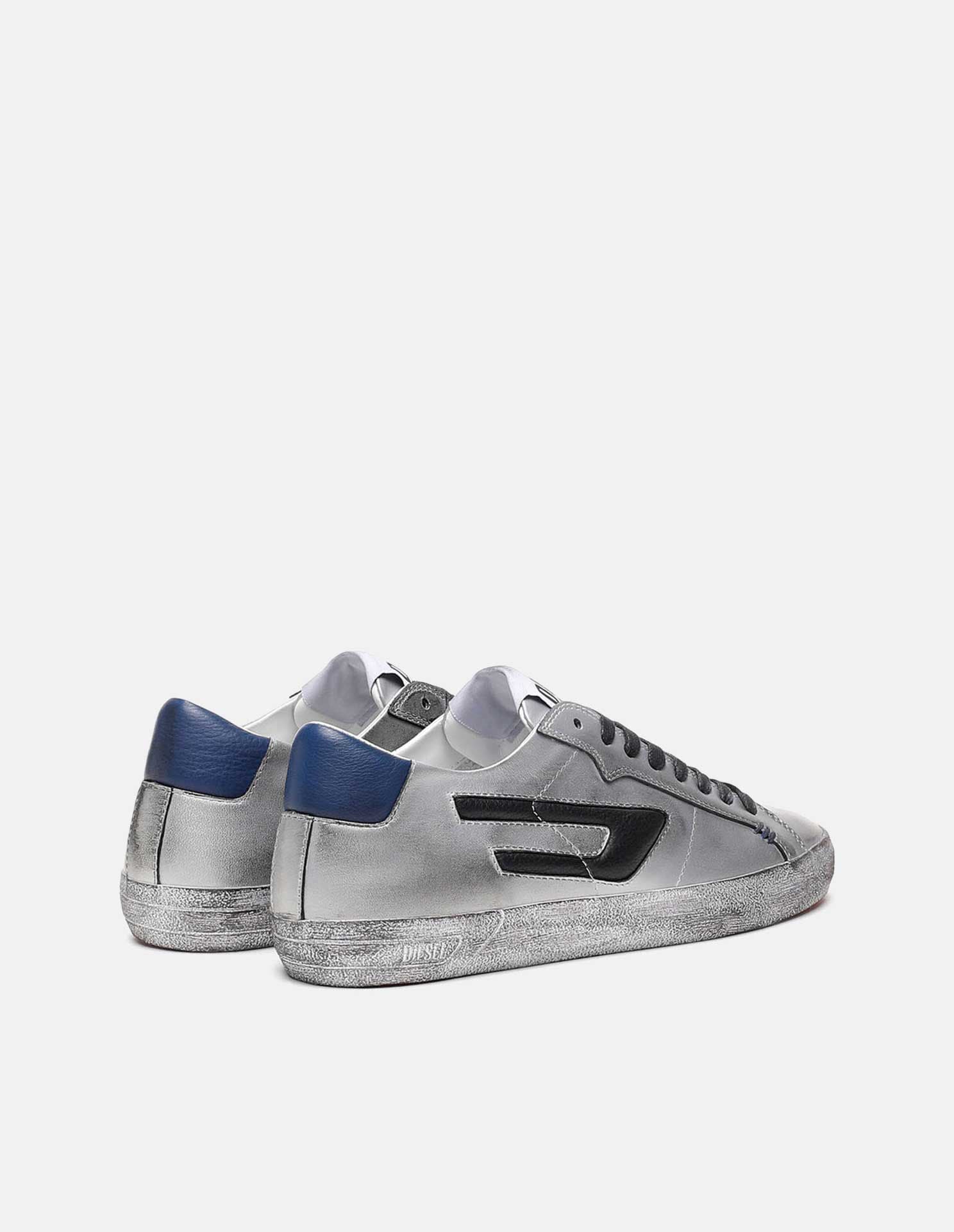 Unisex low-top sneakers with a dirty-effect treatment. Contrasted by the padded D branding and collar, the silver leather upper is finished with three distinctive stitches and set on a bright red outsole.