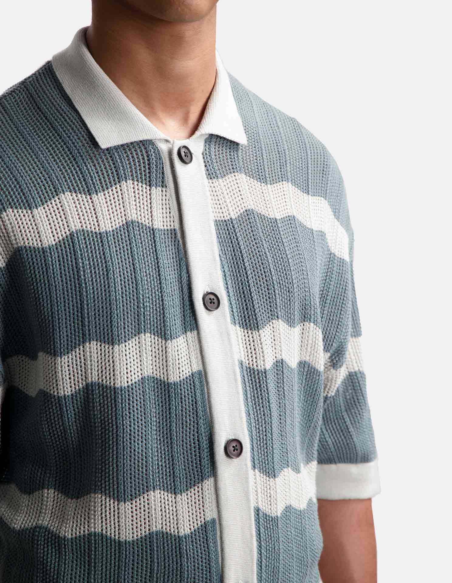 Featuring a bold zig-zag stripes, this knitted short sleeve Tadeo shirt is the perfect summer statement piece. The knitted texture with the trendy loose fit is made to keep you fresh, stylish and relaxed in the summer heat