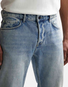 A comfortable summer essential, these DSTREZZED Tapered Jeans in light sky blue capture effortless, sun-drenched style. Crafted from comfortable cotton denim, they feature relaxed thighs and tapered hems—perfect for versatile layering or styling with lightweight knits.