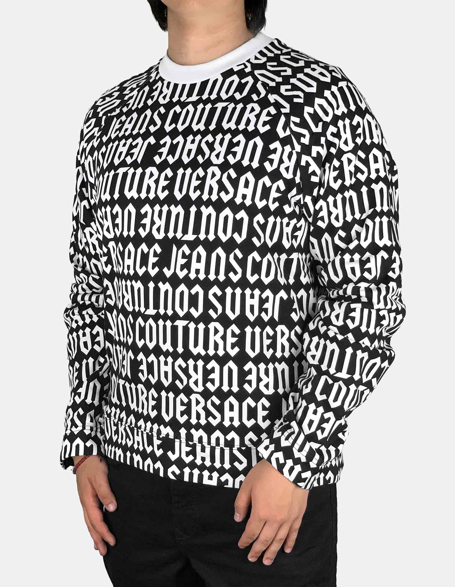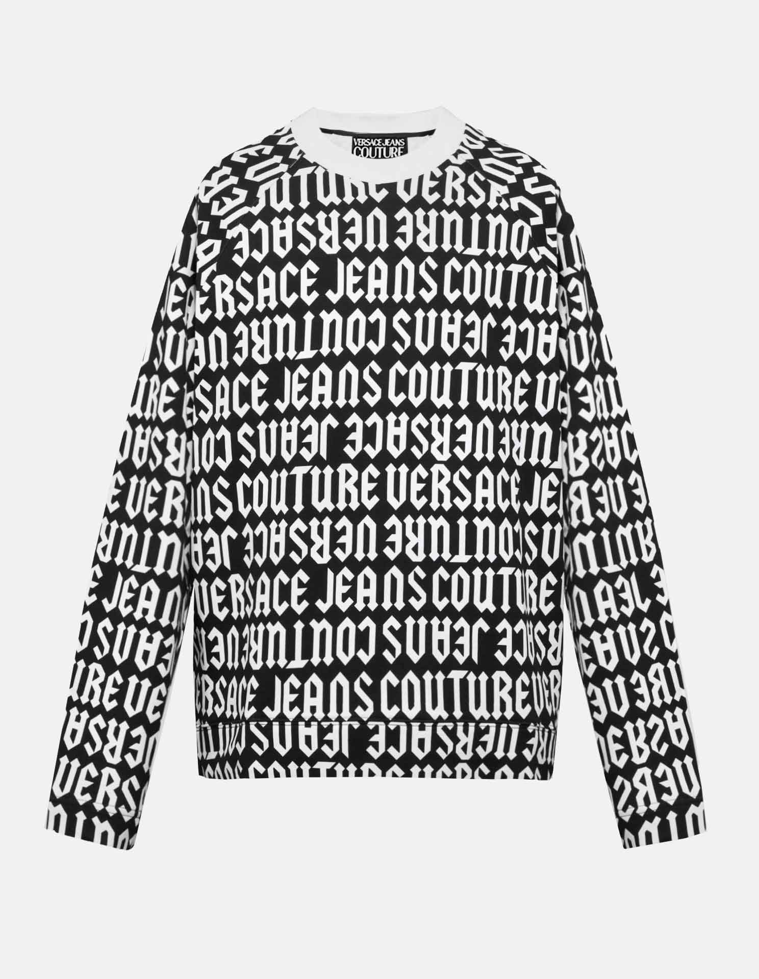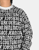 This relaxed-fit French terry sweatshirt merges Gothic storytelling with the iconic Versace Jeans Couture logo. The monogram print of the gothic ,Versace Jeans Couture logo throughout adds an edgy touch to this streetwear-inspired silhouette.