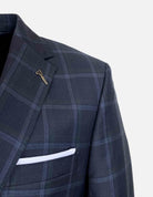 A versatile all-season tailored fit suit, with a dark navy base and very subtle blue and green overcheck. Features a half canvas front, notch lapel, classic two button front, flap pockets and side vents. Made from 100% wool in the Italian mill Marlene.