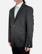 With a Karl Lagerfeld twist to a pinstripe blazer, this light weight sports jacket is light and half-lined for beating the summer heat while keeping to that Parisian sophistication. Perfect to pair with Karl Lagerfeld Logo Pinstripe Dress Pant