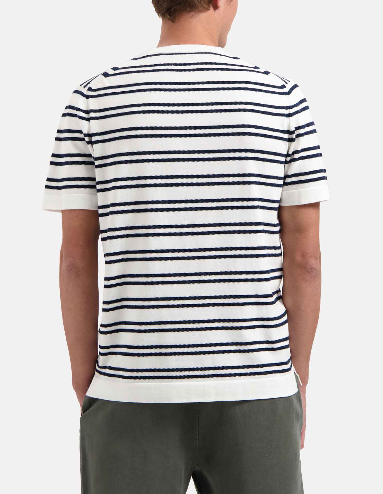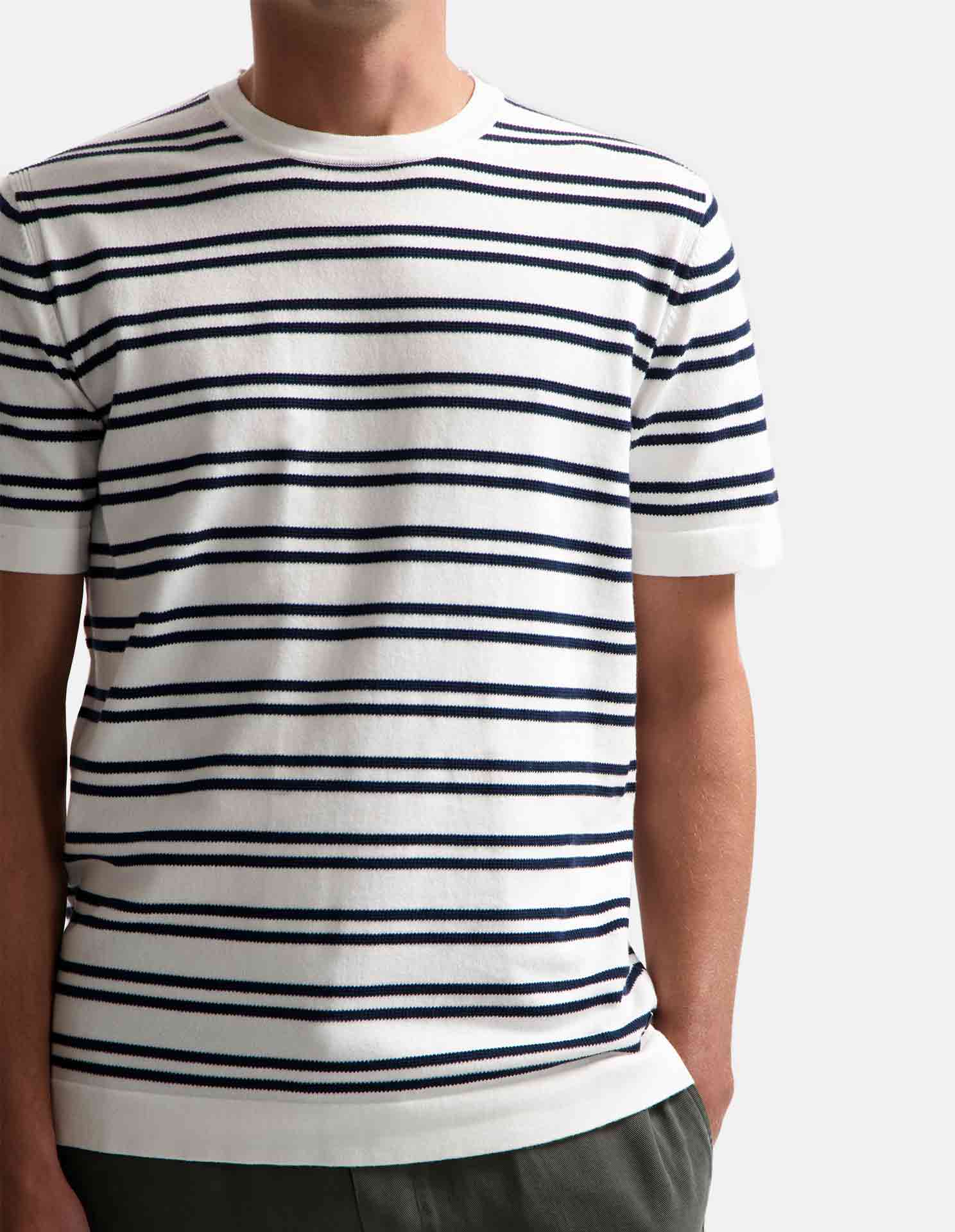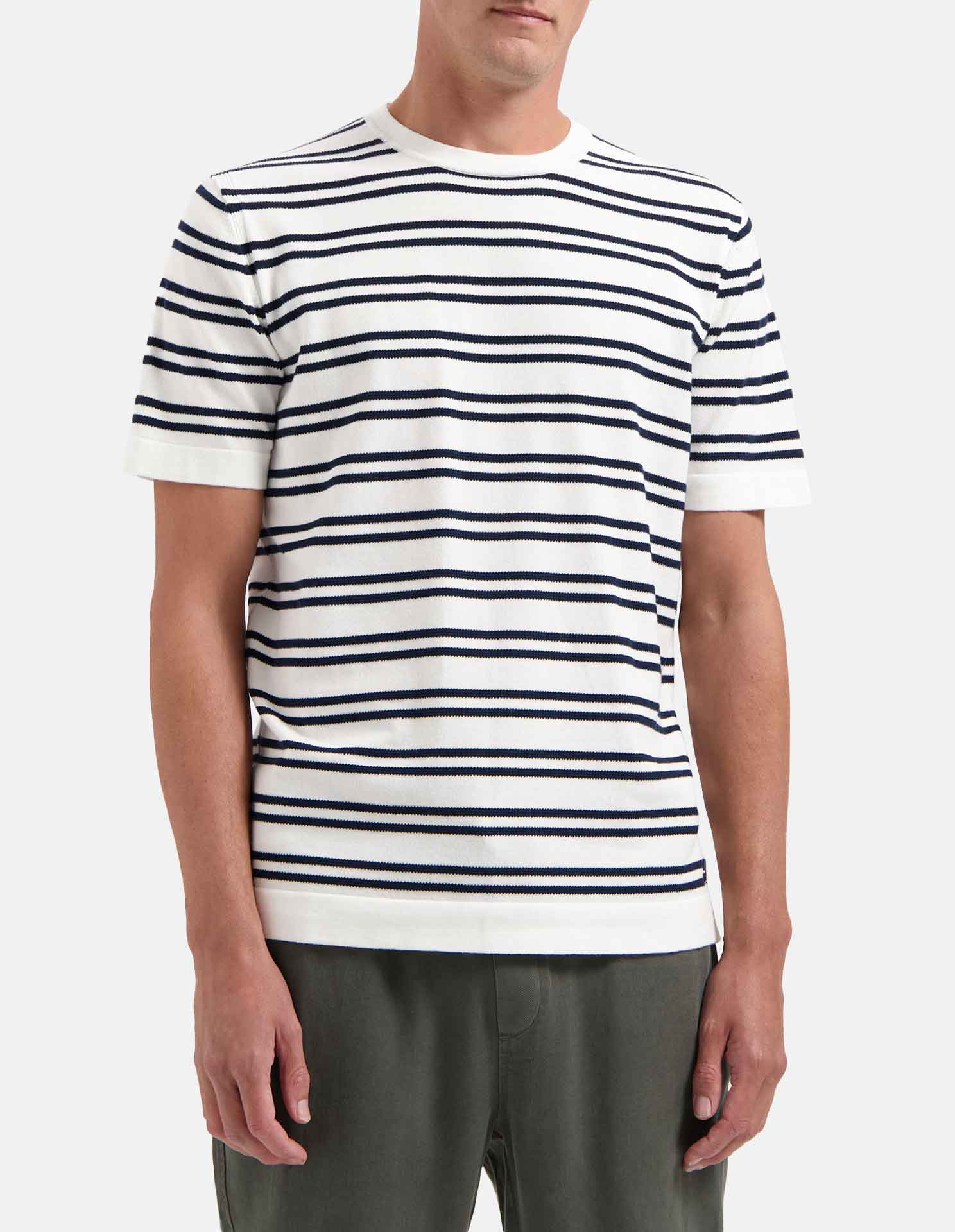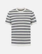 A timeless essential with modern refinement, this DSTREZZED Breton Stripe Tee features clean navy stripes on a crisp white base. Crafted from soft cotton knit, it offers a comfortable fit and classic crew neckline. Perfectly versatile, it brings effortless sophistication to any casual look — from coastal strolls to weekend cafés.