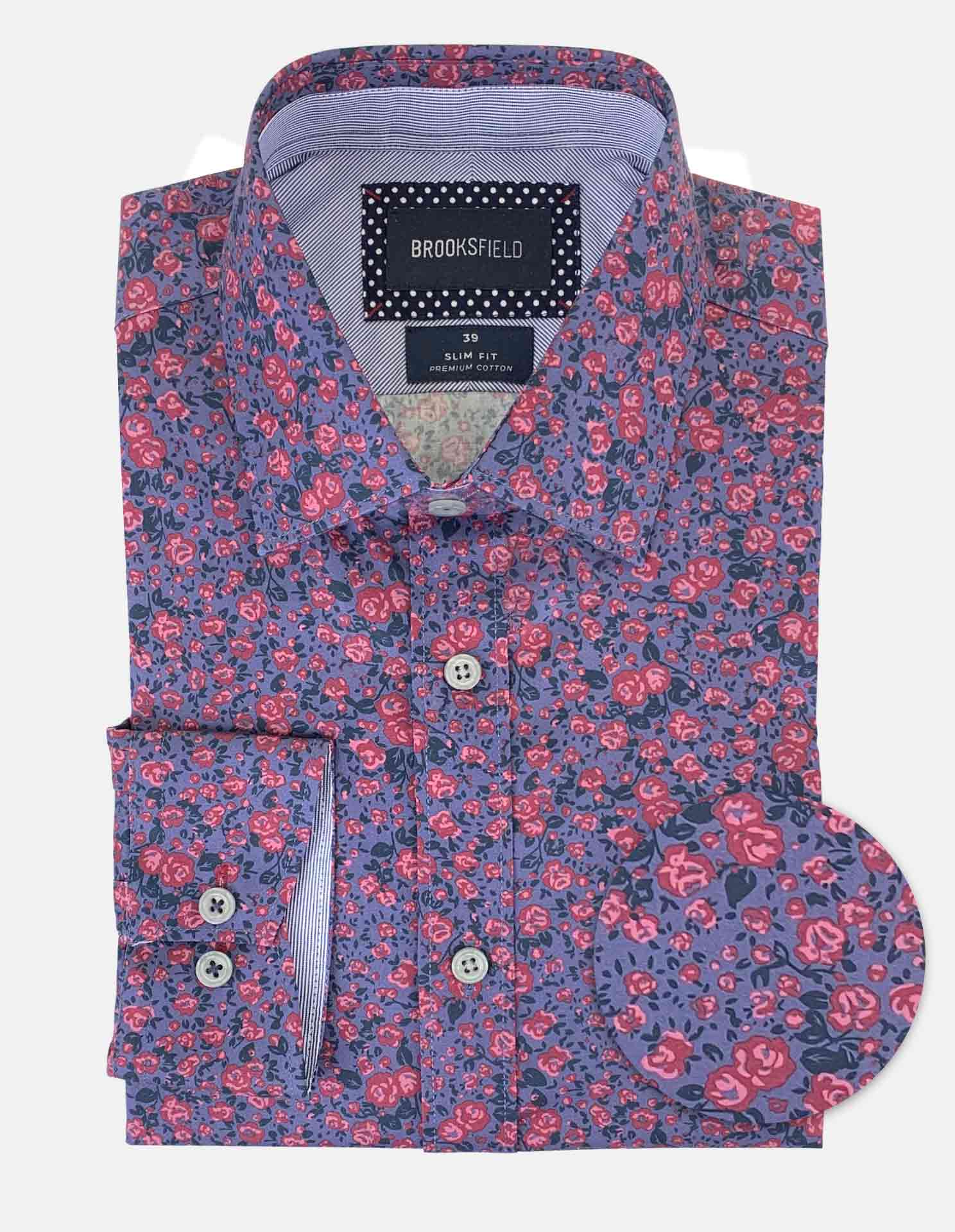 Crafted from premium long-staple 100% cotton in a sateen weave, this slim fit shirt offers a silky-soft feel with reduced creasing and a refined sheen. A dark plum floral print adds a modern edge to classic tailoring. A sharp choice for any business setting or formal events.