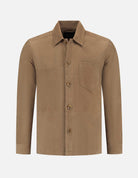Refined yet relaxed, the DSTREZZED Suede Shirt Jacket in camel delivers effortless sophistication. Crafted from soft, supple goat leather suede with a smooth matte finish, it features a single chest pocket and tonal buttons—perfect for layering over tees or knits for a timeless smart-casual look.
